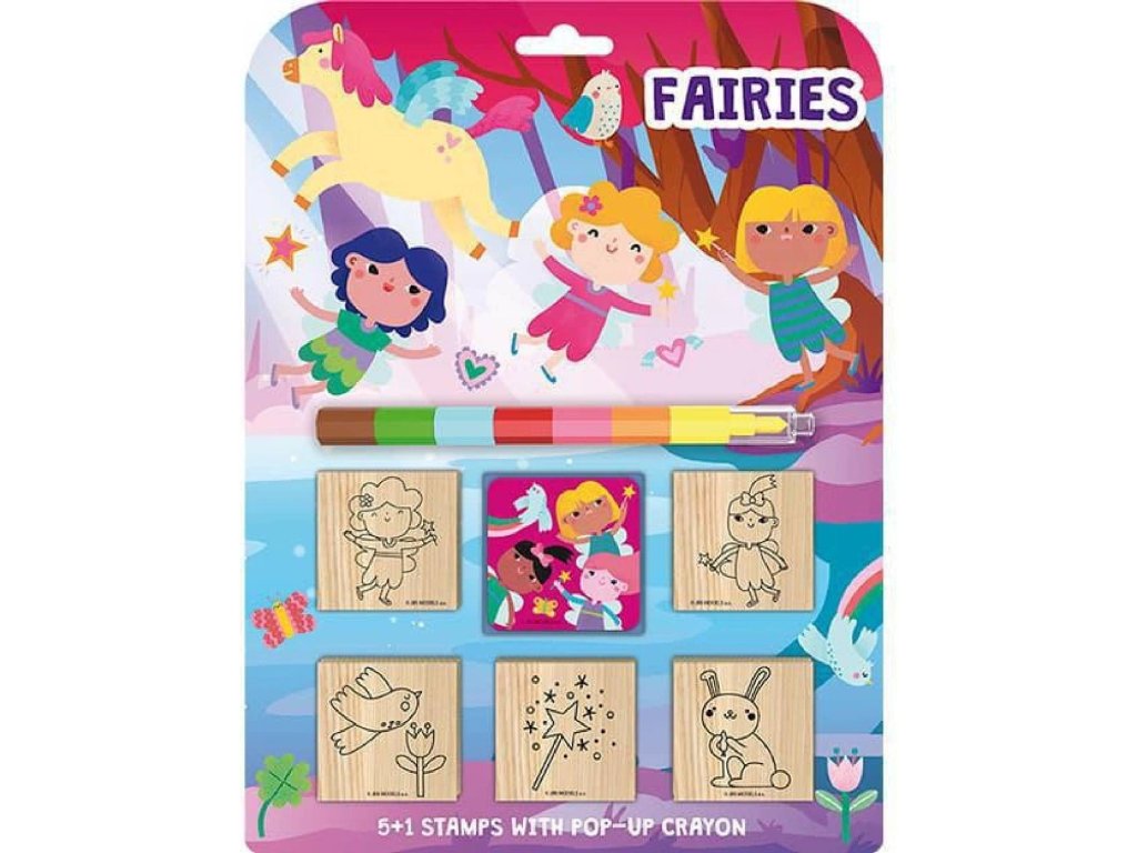 Set obsahuje 5 snadno uchopitelných dřevěných razítek s motivem víl, barevnou podušku a sedmibarevnou skládací voskovku pro vybarvování. Dětská razítka (tiskátka) potěší každé malé dítě. Ať už si hraje na úředníka nebo má výtvarné nadání, vždy mu uděláte radost!Doplňkové parametry