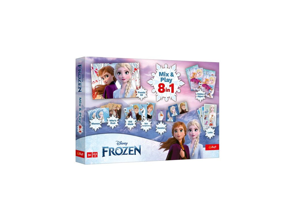 Krátké a hravé partie pro malé fanoušky oblíbených princezen — zábava doma i na cestách. Trefl Sada her Mix&Play 8v1 Ledové království přináší v jedné krabici osm rychlých a jednoduchých her pro děti od 3 let. Hry pro 1–4 hráče (partie cca 10 minut) rozvíjejí paměť, postřeh a logiku; pravidla jsou v češtině a komponenty zabírají málo místa, ideální na cesty i rodinné hraní. Osmihran zábavy v jedné krabici Sada Trefl Mix&Play 8v1 – Ledové království nabízí osm různých aktivit, které udrží děti zabavené doma i na cestování. Díky kompaktnímu balení máte hned několik her po ruce a snadno střídáte varianty podle nálady i času. Puzzle jako trénink trpělivosti Součástí je puzzle se 60 dílky o rozměru cca 33 × 22 cm. Skládání zlepšuje jemnou motoriku a vizuální vnímání, přitom není příliš náročné — ideální první větší puzzle pro malé stavitele. Vzdělávání skrz hru Jednoduché společenské hry v balení cíleně rozvíjejí paměť, soustředění, postřeh a logiku. Děti se učí počítat, porovnávat a pamatovat si páry při pexesu, zatímco hry jako domino podporují logické myšlení. Rychlé a přístupné pravidla Hry mají snadnou obtížnost a rychlé tempo (cca 10 minut), takže se děti rychle zapojí a partii dokončí bez frustrace. Pravidla i komponenty jsou v češtině a textu je u her minimum. Oblíbené postavy a praktické provedení Všechny aktivity doprovází motivy z filmu — Anna, Elsa, Olaf, Sven a Kristoff — což udrží zájem dětí. Kompaktní papírové komponenty zabírají malé místo na stole a balení je vhodné na výlety i návštěvy. Klíčové vlastnosti 8 aktivit v jednom boxu — puzzle, pexeso, domino, lotto, Černý Petr a další Vhodné pro děti od 3 let; hráči 1–4; rychlé partie cca 10 minut Rozvíjí paměť, pozornost, postřeh a logické uvažování Pravidla a komponenty v češtině; malé místo na stole — ideální na cesty Oblíbené motivy z Ledového království s postavami jako Anna, Elsa a OlafDoplňkové parametry
